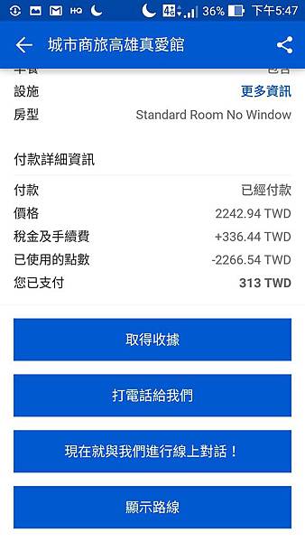 消費金額 : 313$NT,(點數折扣後),訂房時標價約2267$